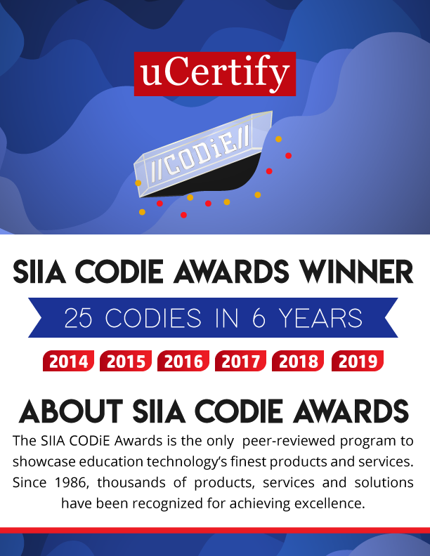 uCertify has won a total of 25 CODiE awards in the past six years in various categories for its products. Including the coveted Best Education Solution Award in 2015 and 2017.