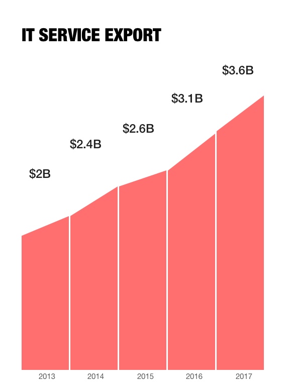 The recent industry reviews show a breathtaking rise up to $3.6 billion within a year. It looks like the industry development is not going to slow down any time soon, with the number of software engineers currently estimated at 220,000.