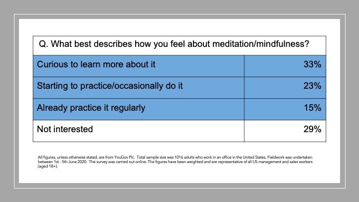 Tags: Covid-19, meditation, mindfulness, pandemic, Stress, survey, U.S. Office workers, working from home, workplace culture