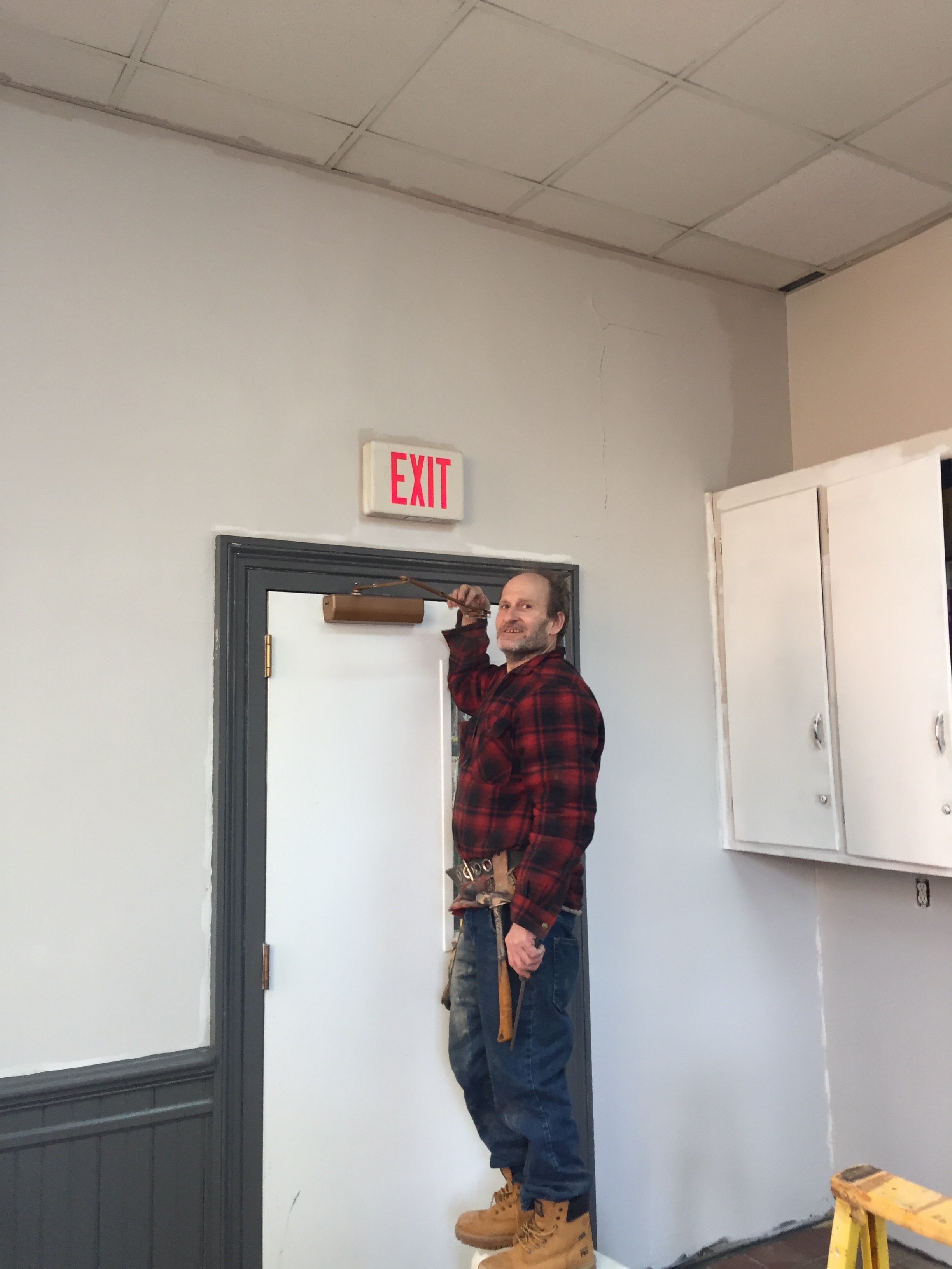 Carpenter Danny Durham leads carpenter projects. His two sons, Corey Thomas and Kyle Thomas, and Joe Whalen were instrumental in finishing this project. Paul Cifuni was involved with the doors and hardware portion of the Nyack Center project.