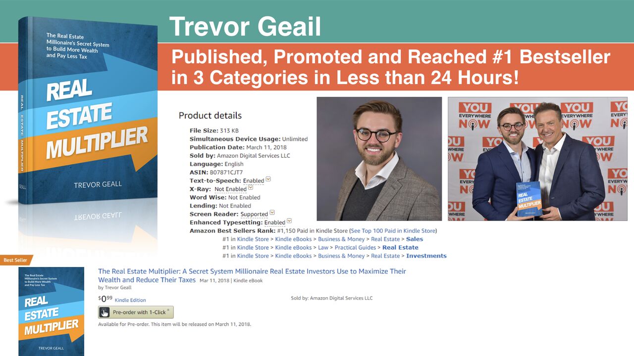 TORONTO, December 20, 2017 (Newswire.com) - A remarkable story of the relatively unknown author Trevor Geall becomes a best selling author 24 hours after the launch of his book, The Real Estate Multiplier: A secret system millionaire real estate investors use to maximize their wealth and pay less tax.