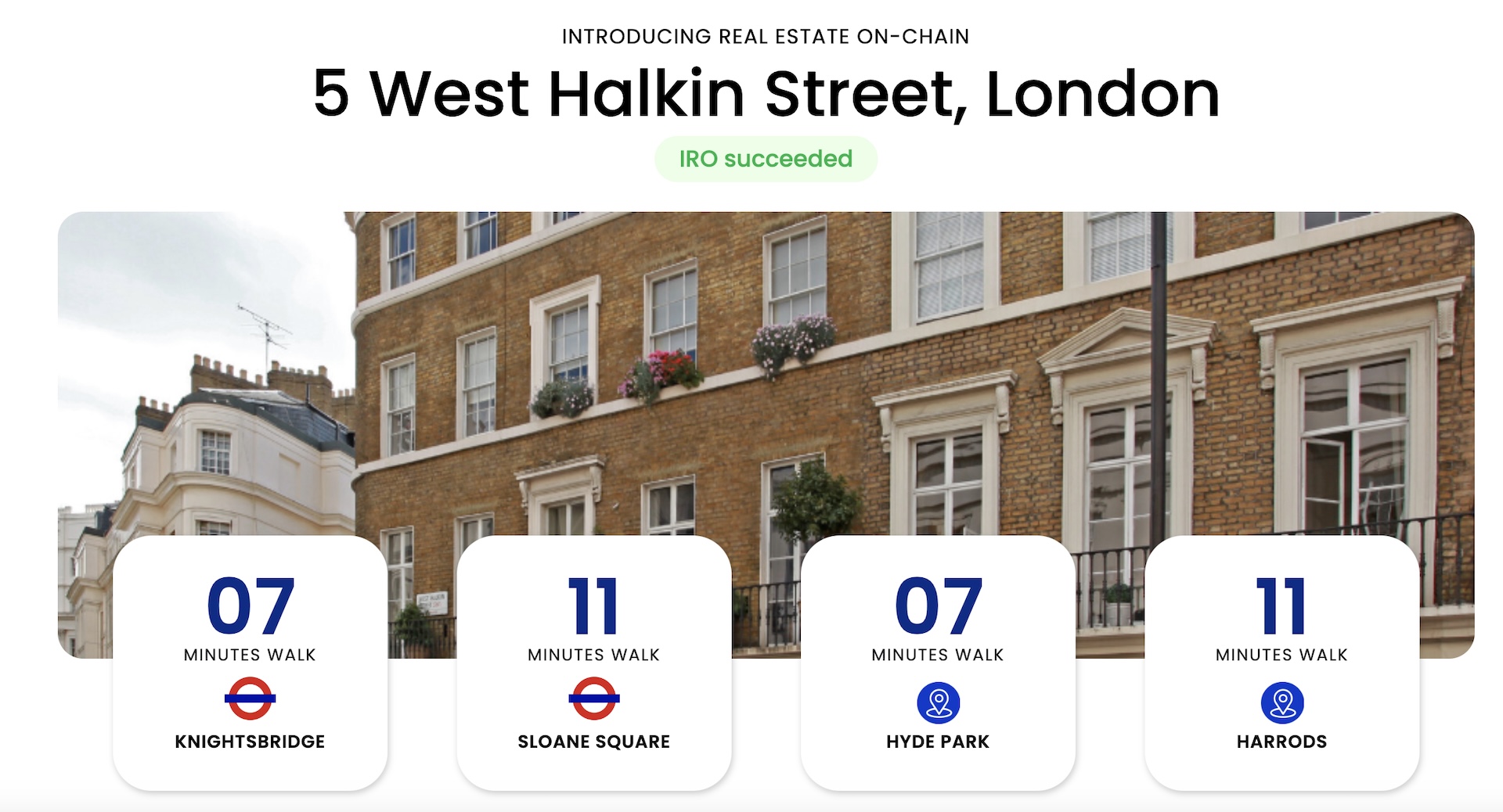 LONDON, England, November 1, 2023 (Newswire.com) - CitaDAO, a global real estate tokenisation platform, proudly announces the successful completion of the fourth Introducing Real Estate On-chain (IRO). The real estate property located at 5 West Halkin Street, London was tokenised for US$ 4,284,000. This achievement not only reinforces CitaDAO's leading position in the commercial real estate sector but also showcases the potential of blockchain technology in advancing the real estate industry.