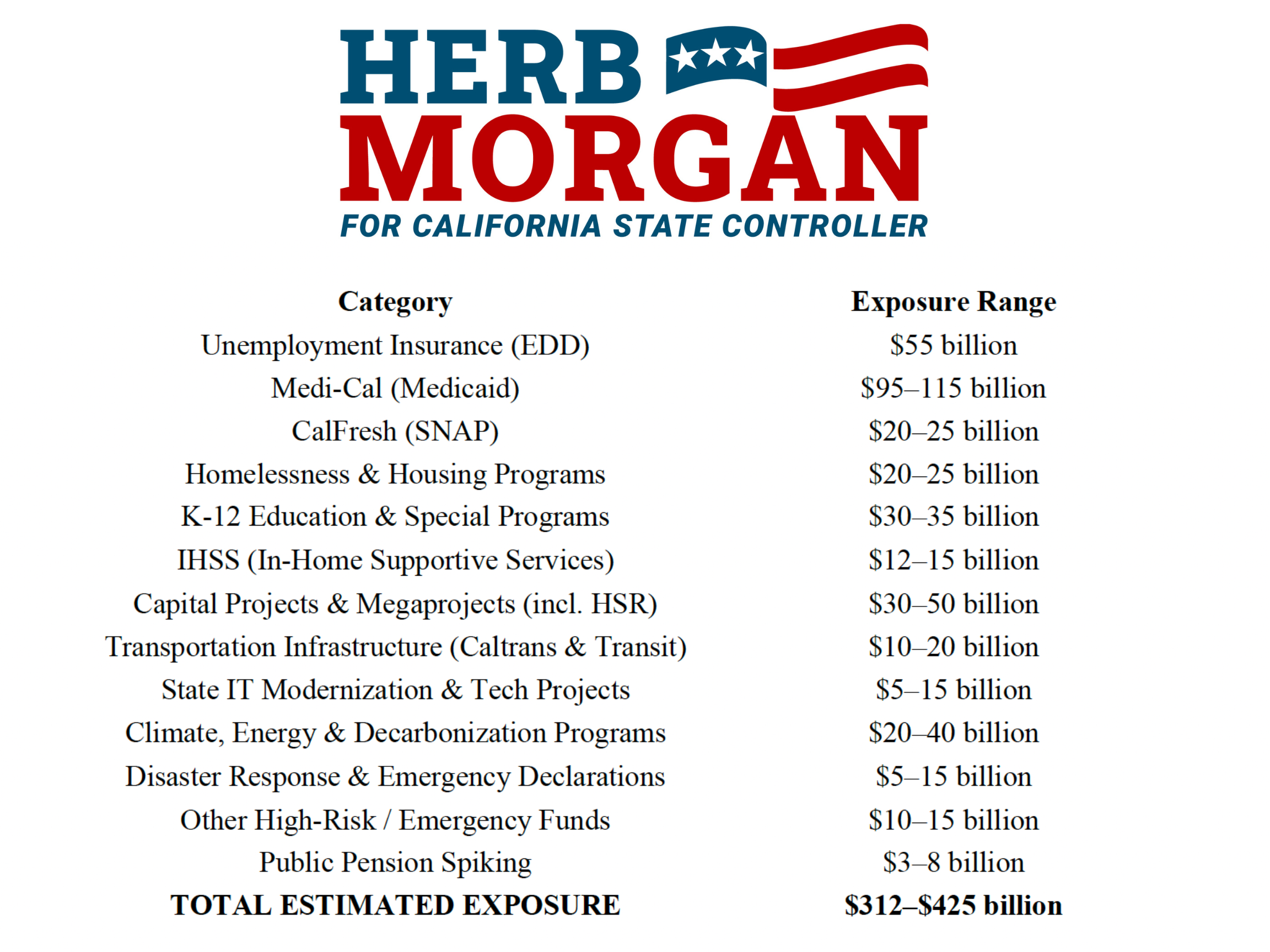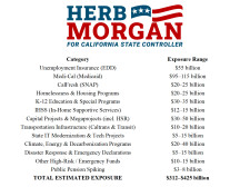 Updated Analysis from CA Controller Candidate Herb Morgan Identifies Up to $425 Billion in Potential California Spending Exposure