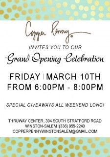 Winston-Salem, NC, March 15, 2017 (Newswire.com) - The beloved Charleston-based Copper Penny, an upscale women’s boutique, has opened a franchised location at 304 South Stratford Road Winston-Salem in the Thruway Center. Copper Penny Winston-Salem is a franchise location owned by Margaret Dickerman. The boutique is open Monday – Saturday 10-7 and Sunday 12-6.