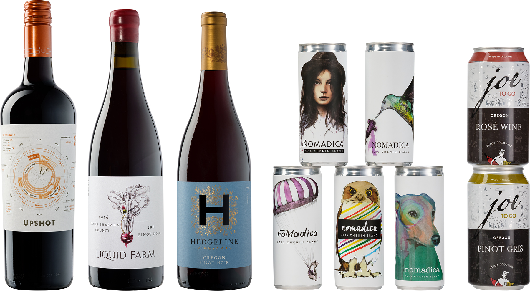 (Multiple wines with similar packaging elements to work together as a cohesive unit.)
