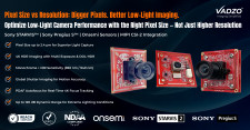 This is why Vadzo's embedded camera lineup is designed around a range of pixel sizes rather than simply maximizing resolution ensuring optimal performance across real-world low-light imaging scenarios.