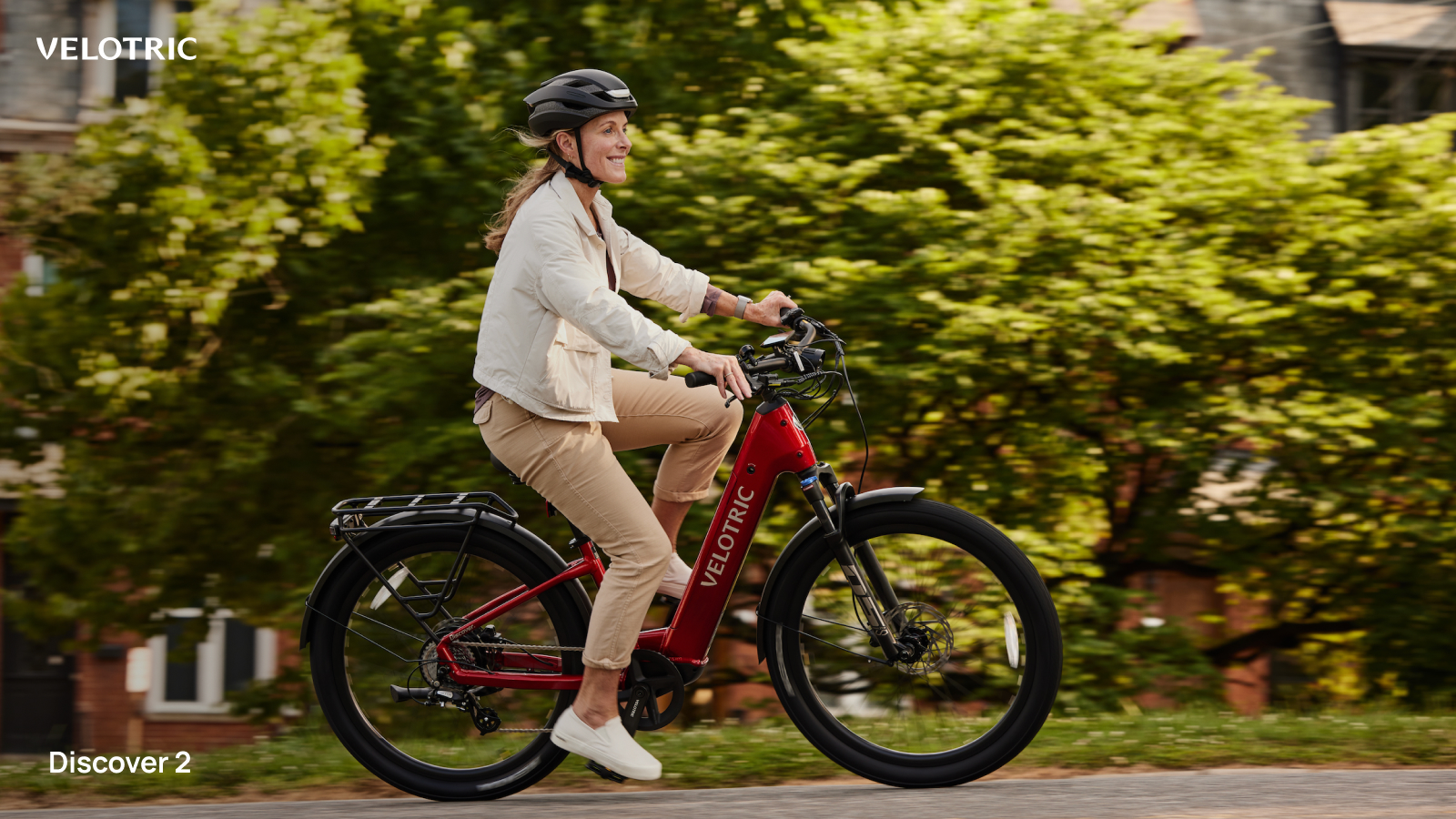 - Discover 2 (Premium Commuter E-Bike): The Discover 2 is the ultimate urban commuting bike, offering exceptional comfort and functionality. Its low step-through design, wide cushioned seat, and upright riding position make it Velotric's most comfortable model. Equipped with a 750W motor, it boasts a range of up to 75 miles and features hydraulic suspension. Retail price: $1,899. Sale price: $1,699.