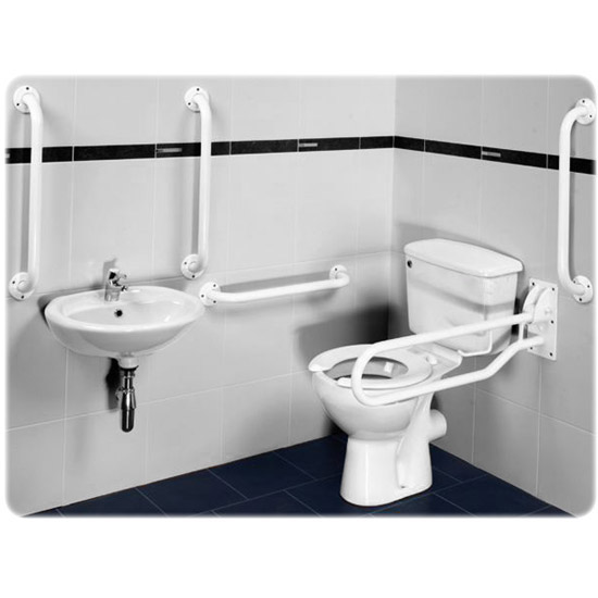 The Disabled Bathroom Suites offer a variety of assistive accessories coupled with specialised toilets and basin, cisterns include a Spatula Lever for Easy Flush. The disability bathroom accessories consist of various grip bars and support accessories for the elderly, frail and people with a disability to help create an easier bathroom experience.