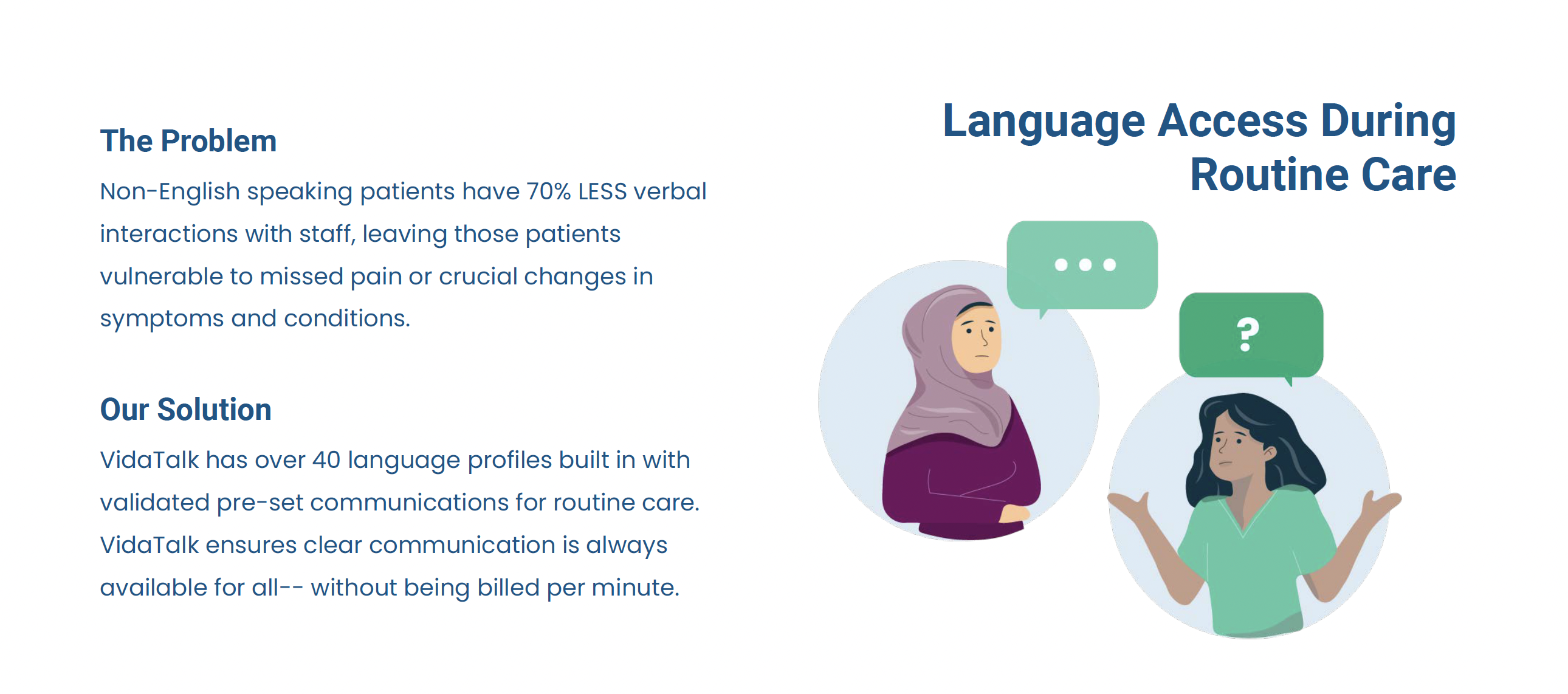 Lisa Spencer, Vidatak's Chief Experience Officer shares her insight explaining, "VidaTalk promotes equitable and patient-centered healthcare experiences for patients who rely on sign language interpreters, and even more importantly, for those patients who lost their hearing and haven't learned signed language."