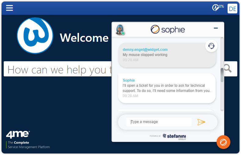 PALO ALTO, Calif., January 17, 2022 (Newswire.com) - A standard 4me integration with Stefanini's Sophie is now available from the 4me App Store. Sophie is a virtual agent with natural language capabilities for human-like user support. She provides 24/7 first-level support. Sophie can help end users navigate through voice interaction, open and consult tickets, look for relevant articles, or transfer them to human support agents. She is the latest addition to the rapidly growing 4me App Store.