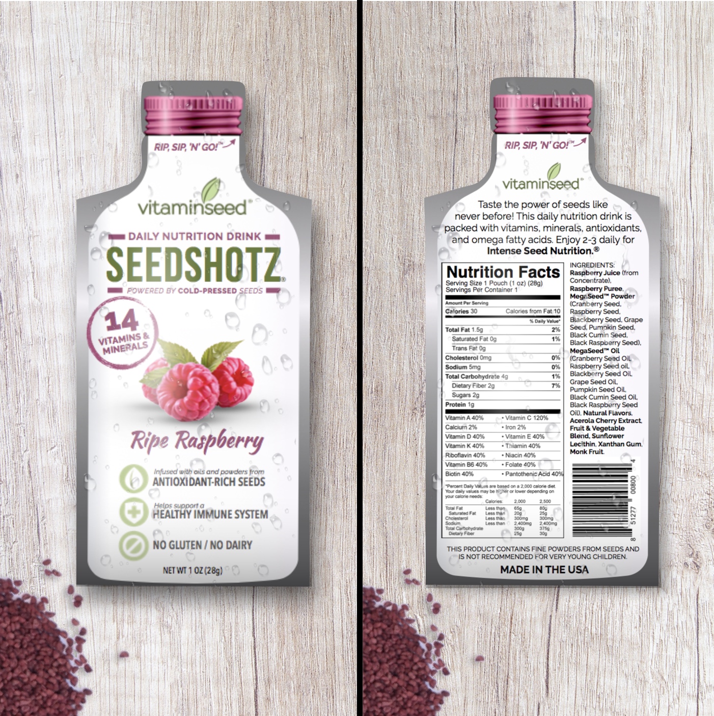 Seedshotz® are designed to make it easy to get premium essential nutrients on the go. The slim, convenient pouch is ready to “Rip, Sip ’n’ Go” or can be easily added to a smoothie or favorite drink. ”We wanted to create something easy and fun for people with busy, active lives,” Forsman says. Seedshotz® come in four flavors to please any flavor palette: Ripe Raspberry, Blackberry Burst, CranApple Zing and Goodness Grape. Fourteen vitamins and minerals never tasted so good.
