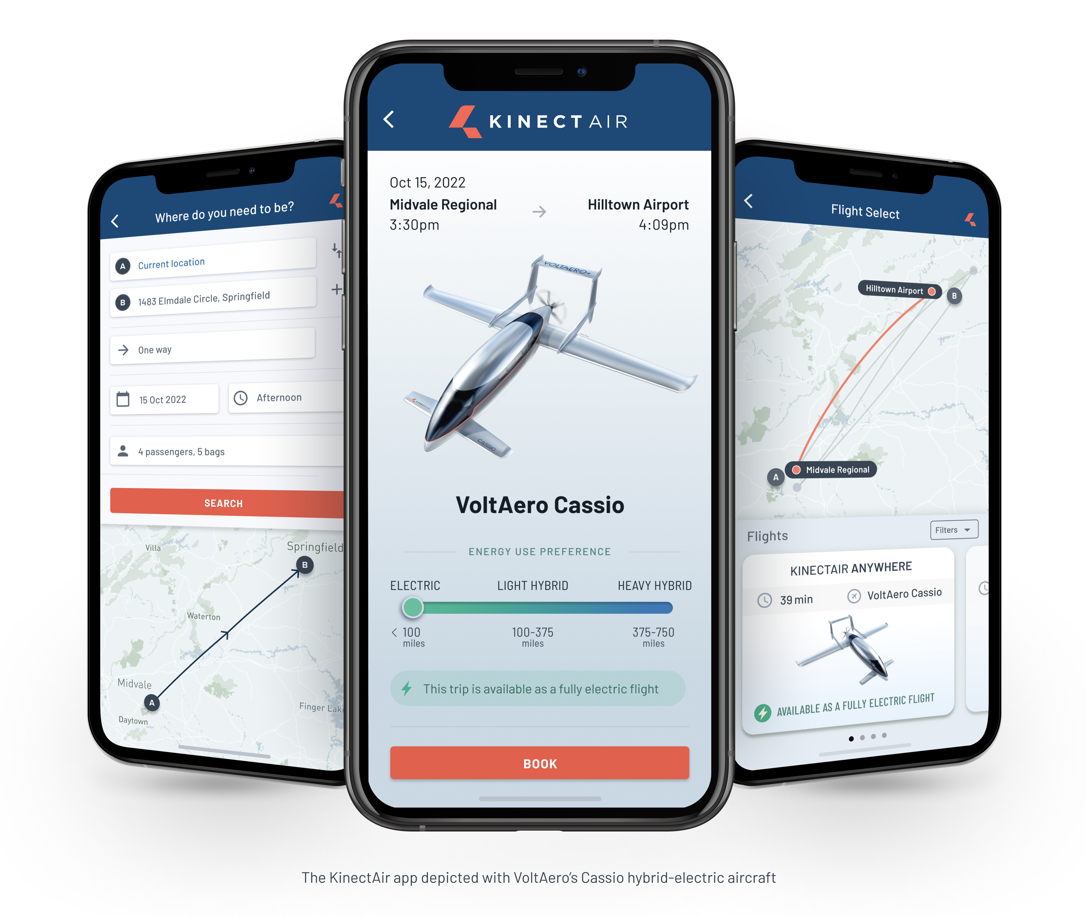 MÉDIS, France, July 15, 2020 (Newswire.com) - The creation of a regional air mobility ecosystem for VoltAero’s new Cassio hybrid-electric airplane has taken an important step forward through the French company’s collaboration with U.S.-based KinectAir, which is developing a flexible on-demand flight network, utilizing an artificial, intelligence-enabled smartphone application.