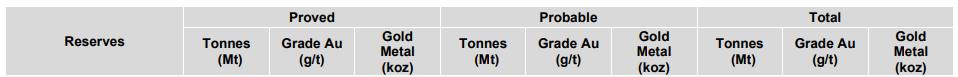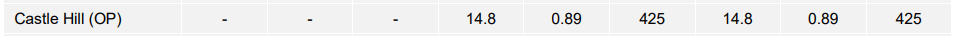 Table 1: Castle Hill Mineral Reserves (December 2022)
