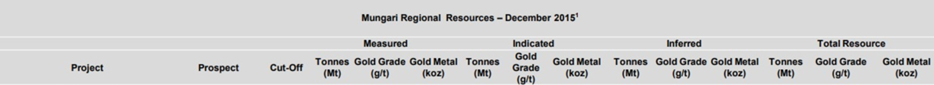 Table 2: Kunanalling Mineral Resources (December 2015)