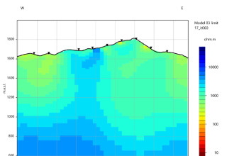 The MT survey data (167 stations on 14 lines) were reprocessed by Vox Geophysics using the ModEM inversion algorithm to generate a fresh 3D resistivity model for the Colosseum Project.
