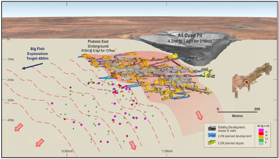 Figure 2: Plutonic East's mine plan showing mineralisation adjacent to planned work areas.
