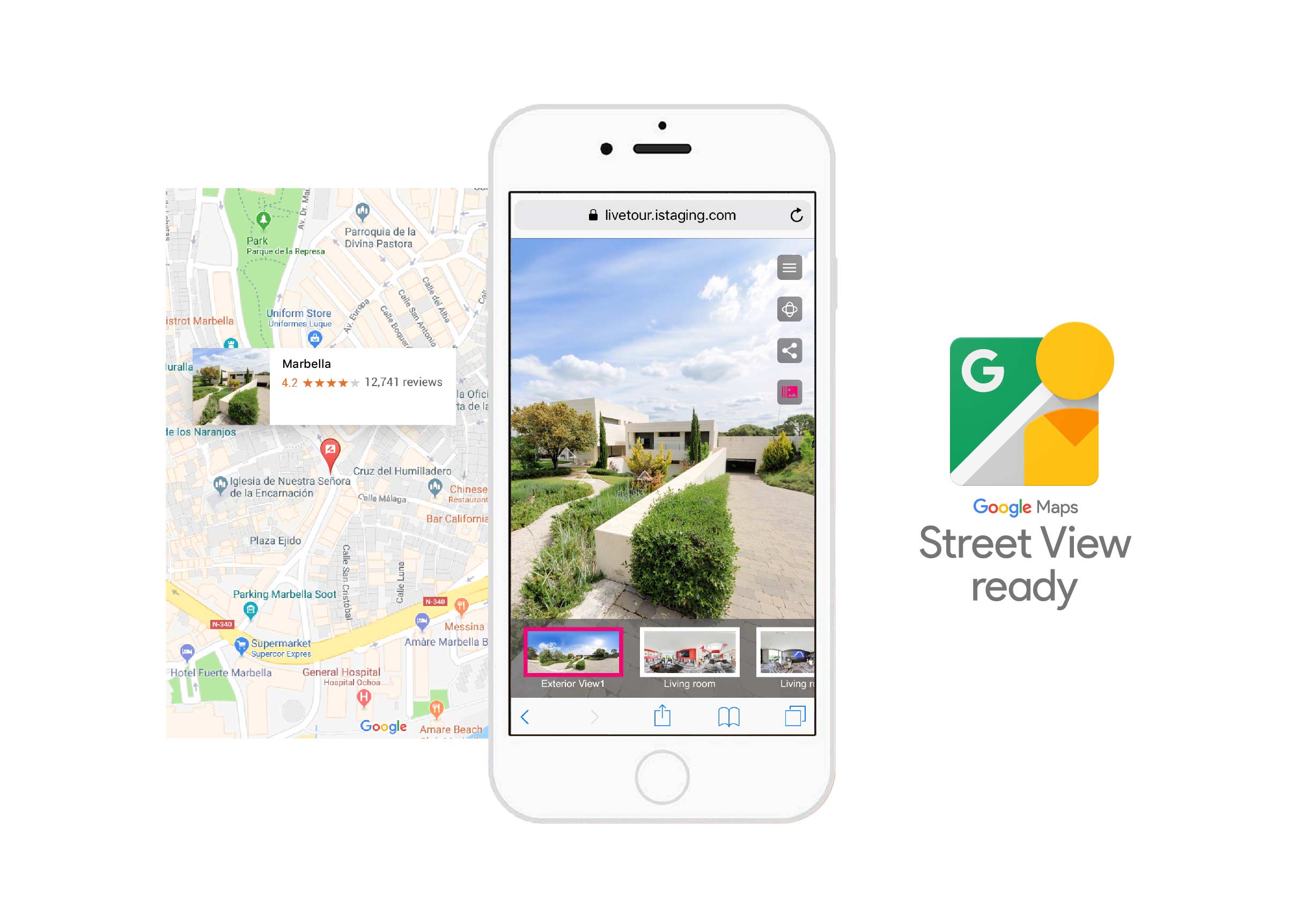 With the addition of Street View, iStaging eases the workflow of professional photographers by adding another option to share 360° panoramas within the iStaging ecosystem. Every iStaging LiveTour also has its own unique web link that can be embedded on any website, viewed in VR using Google Cardboard, or shared on various real estate websites.