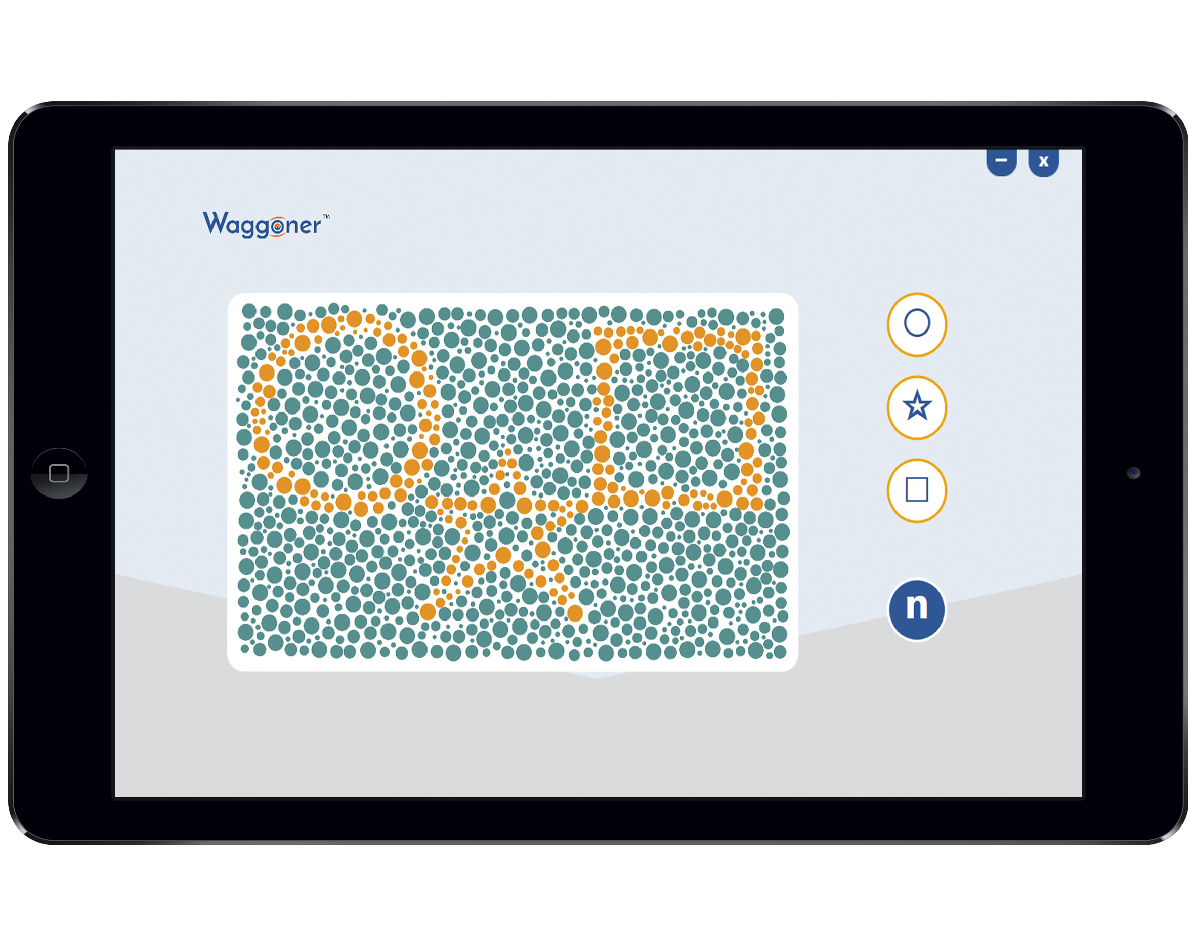 CVTME was originally developed 25 years ago by optometrist, Dr. Terrace Waggoner, for color vision screening in children, and is adaptive for people with intellectual disabilities. The tool uses pictures made of colored dots displaying circles, stars, and squares instead of numbers. It can be completed in less than 60 seconds and has been validated by several academic institutions to have excellent sensitivity and specificity.