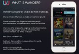 Using Wander, like-minded singles can now easily come together to chat about a wide range of shared interests like music, movies, nightlife, dating, travel/adventure, food, fitness, technology, gaming, and fashion. Wander users can also easily share real-time chat and meet during larger live events like music festivals, conventions, sporting events, or, smaller group events like flea markets, road trips, hiking, and bike rides.