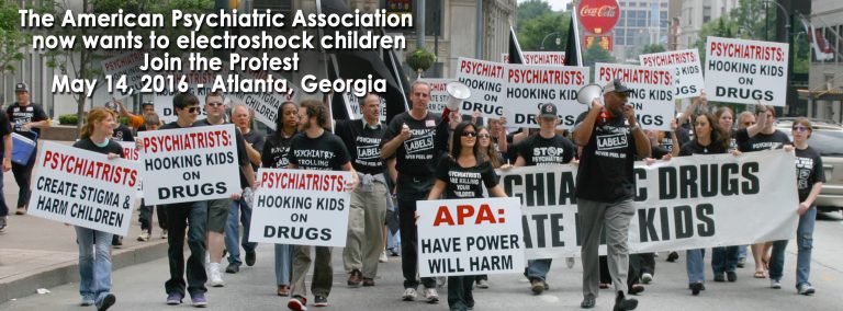 In continuing its long expose of electroshock and in particular on children, CCHR is organizing a protest march at the annual APA convention in downtown Atlanta, Georgia on Saturday, May 14, 2016. For more information on the protest, visit this page.