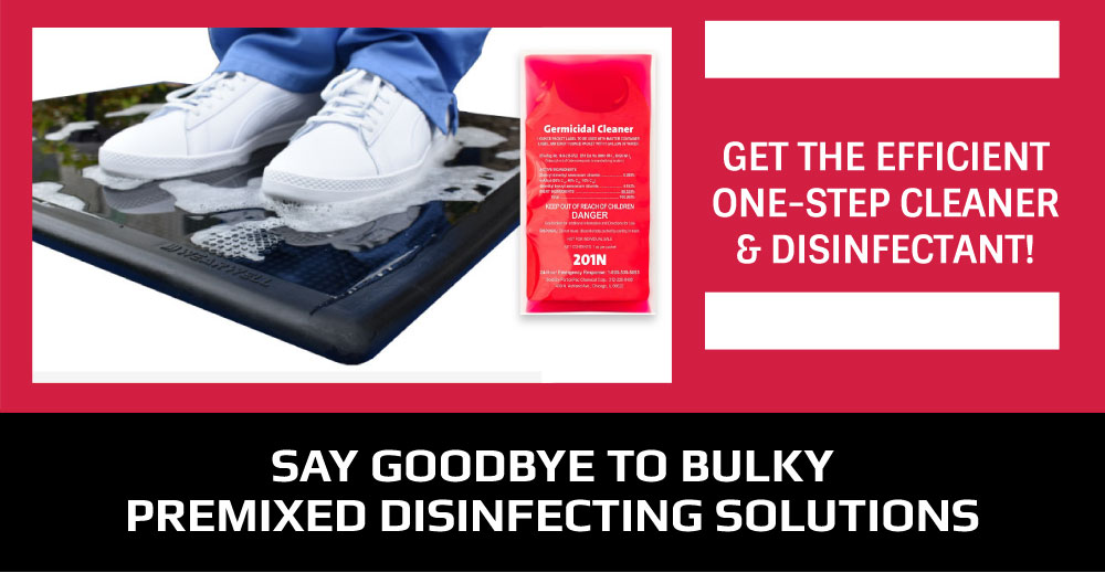 Users of bottled concentrates and bleach face the challenge of proper measurement of concentrate to water. Over dilution can result in a solution that's ineffective. Not enough dilution can be harmful to personnel and damage the footbath mat. PortionPac® takes out the time, hassle, and uncertainty of the proper dilution. Simply fill your footbath mat with water and add 1 pouch of PortionPac®. The right dilution every time!