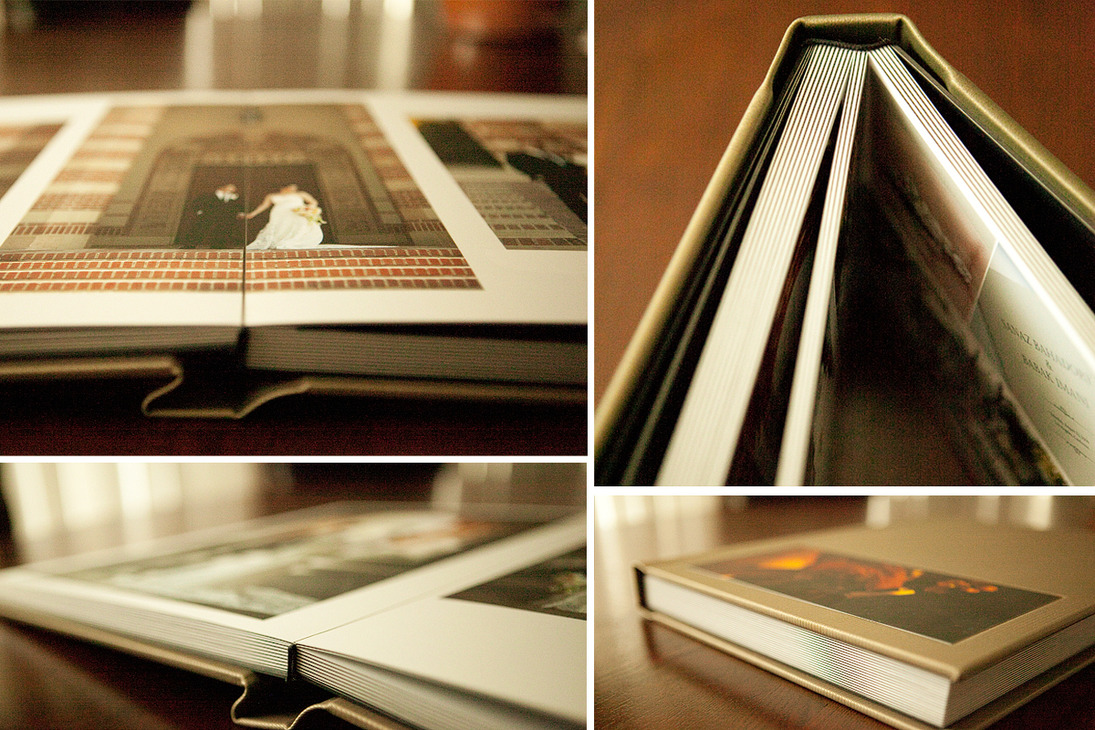 "Our books are handmade. Clients will notice the pages are thicker, the image color and resolution is absolutely stellar, and the binding is perfect. All albums are created with the highest quality materials and construction," explains Gloria Mesa regarding her wedding albums.