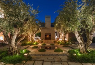 Inside, there is a luxurious master suite with generous his/her bathrooms and Century City views. There are four additional en-suite bedrooms as well. A voluminous living room transforms into a studio quality theater, stylish den with bar, and private office. The wooded barn-like great room includes an open kitchen, dining area, large family, and sunroom. The windowed walls slide away to a center courtyard, outdoor dining area, fruit orchard, and vegetable/herb garden. The two-story rec facility with twin gyms, cold plunge, steam room, and sauna are just steps away from the pool and spa. A sense of intimacy, warmth, and informality pervades. The estate is co-listed with Linda May at Hilton & Hyland.