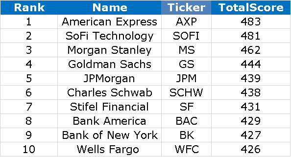 Rank | Name | Ticker | TotalScore |