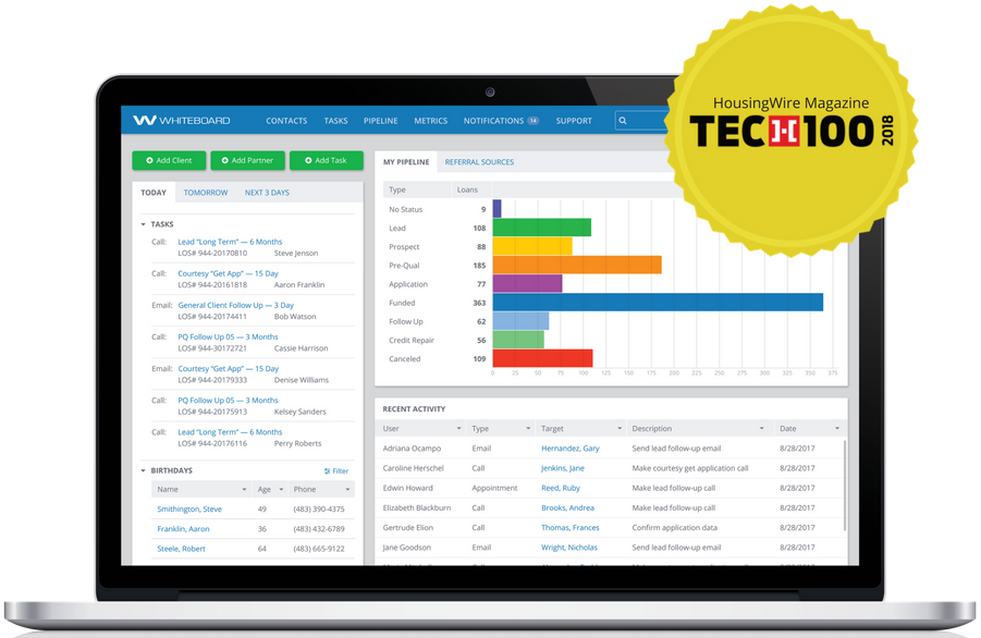 Whiteboard Mortgage CRM Named to 2018 HousingWire Tech100
