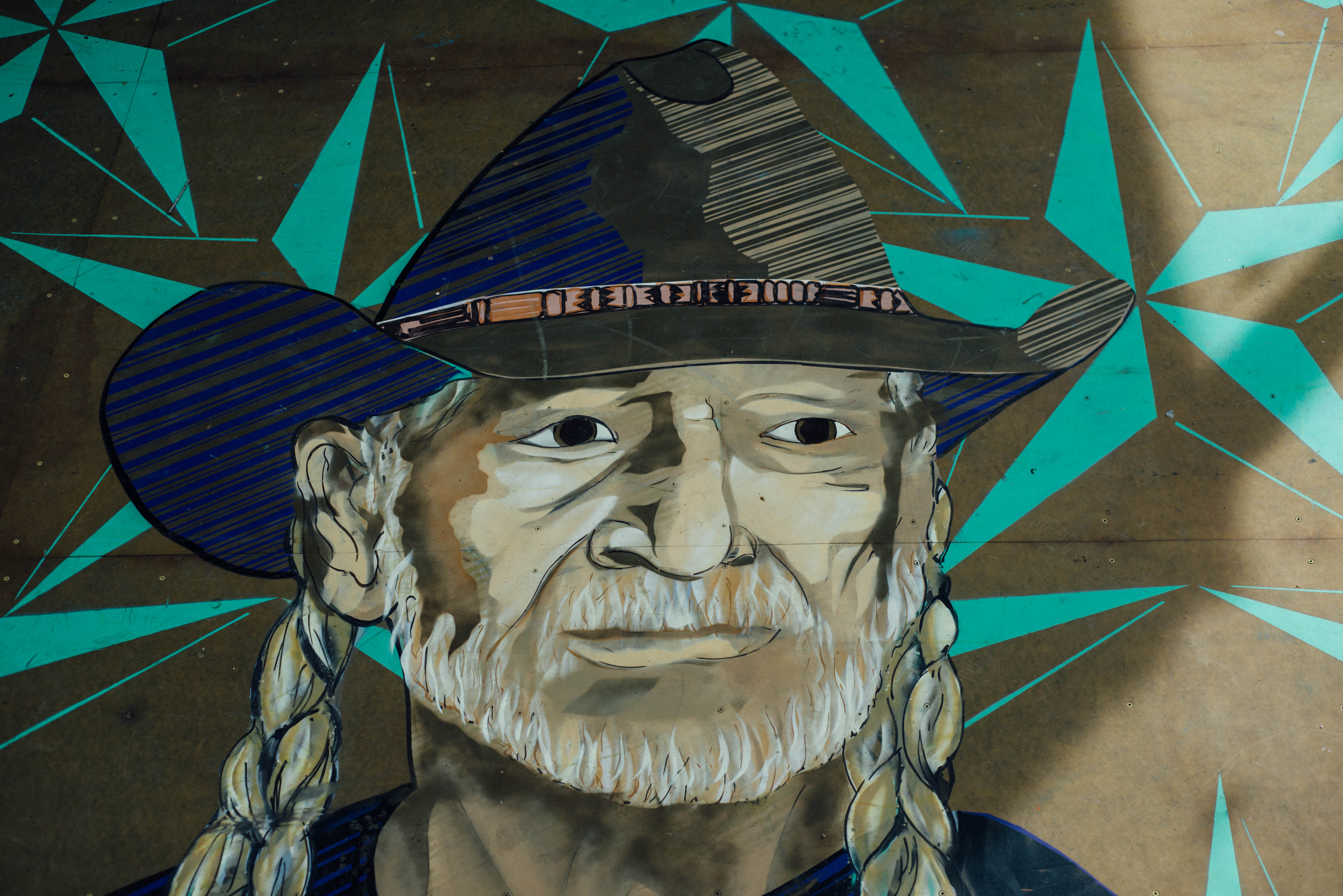 Luis Angulo, a Venezuelan, Austin-based artist was chosen to paint the Willie mural. The entire treatment was painted with hand cut stencils and spray paint, a painstaking process that Angulo is becoming known for in street/graffiti art circles.