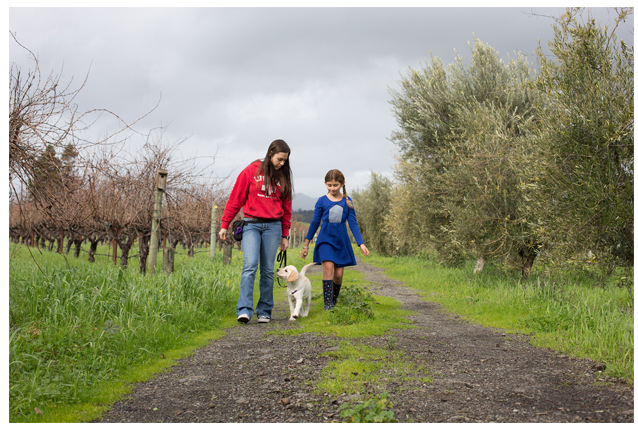 In 2016, Honig Winery adopted Honey, a yellow lab pup who will be the first ever dogs to be trained as a dual-scent sniffer. As in 2005, the dog will be trained to sniff out the pheromone for the vine mealy bug. While the pest is not rampant in Napa Valley vineyards, and is not present in the Honig vineyard, it is an ongoing issue for winegrowers that require continued attention. As a trained “sniffer” dog, Honey will be one more resource available for detection of the pest. Although, the family is excited to continue their support of this sustainable effort, they have tasked Honey with a second, and maybe even more important role within the family, as a diabetic alert dog for Sophia Honig.