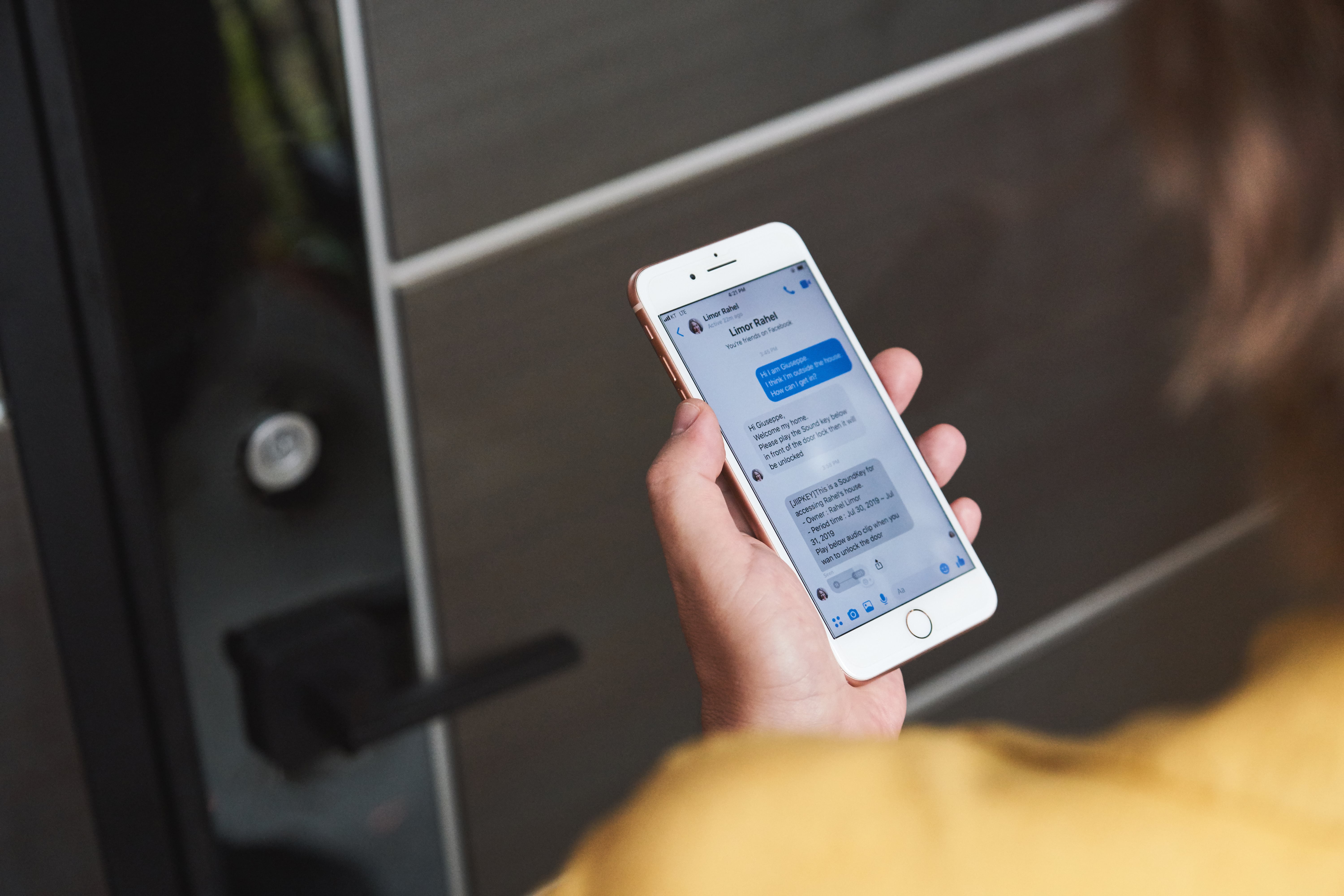 JIIPKEY opts out of Bluetooth and instead, uses encrypted soundwaves as its wireless communication protocol. With JIIPKEY, the door is unlocked by a SoundKey™️ which is an encrypted sound file that is undetectable by the human ear. Once a SoundKey™️ is generated through the JIIPKEY app, the corresponding code is sent to the lock, and the SoundKey™️ can then be sent to other people via text or other third-party messaging apps.