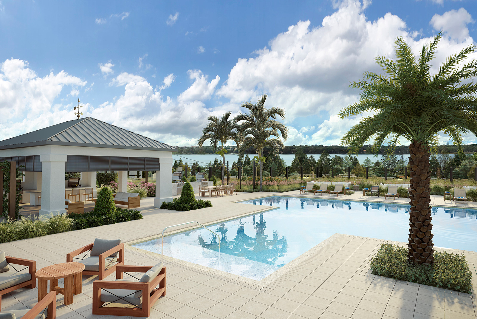 Lake House by Alta provides cosmopolitan amenities in a community-centered living space with three elevated courtyards, each featuring scenic views of Spring Lake. Residents can soak in the Florida weather from the comfort of private, resort-style cabanas along the lakeside saltwater pool, cozy up next to the fire pit or relax under the covered poolside pavilion. For those seeking more active forms of recreation, residents can break a sweat in one of two fitness rooms, enjoy a specialty cocktail or a glass of wine in the tasting room, entertain guests over a game of billiards or bring the fun outdoors with a ping pong match on the custom concrete table or a cornhole tournament on the multi-purpose game lawn.