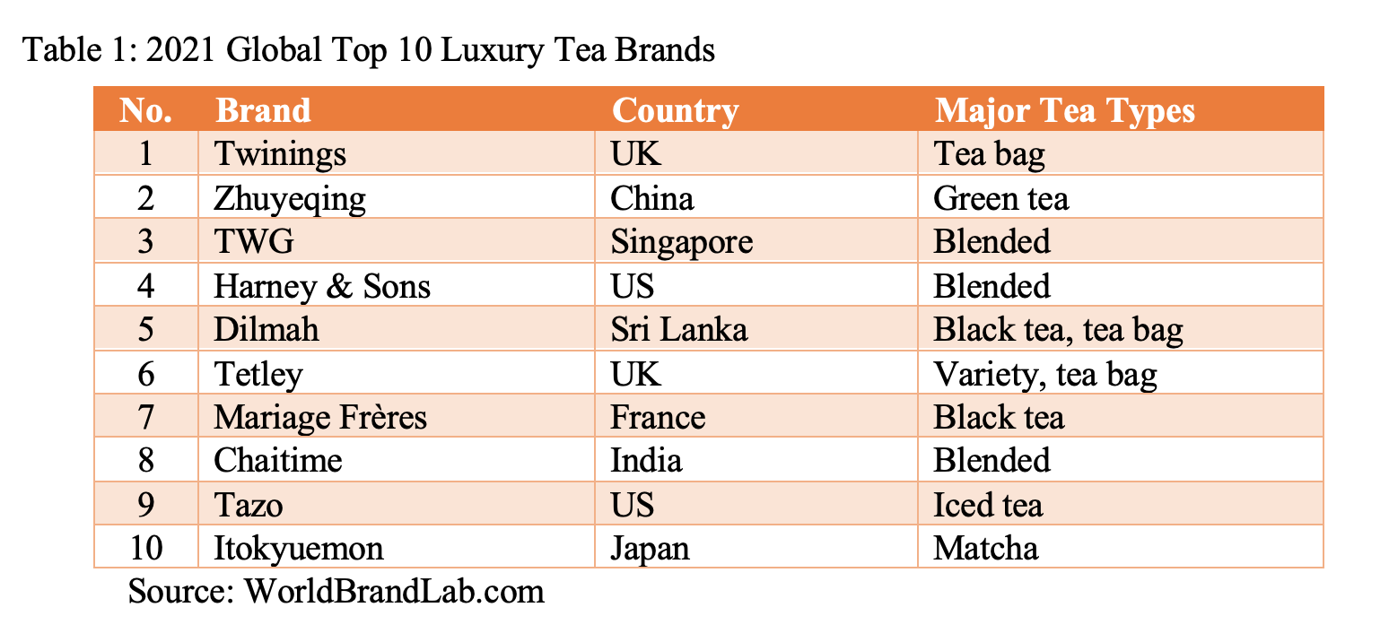World Brand Lab Releases Its '2021 Global Top10 Luxury Tea Brands