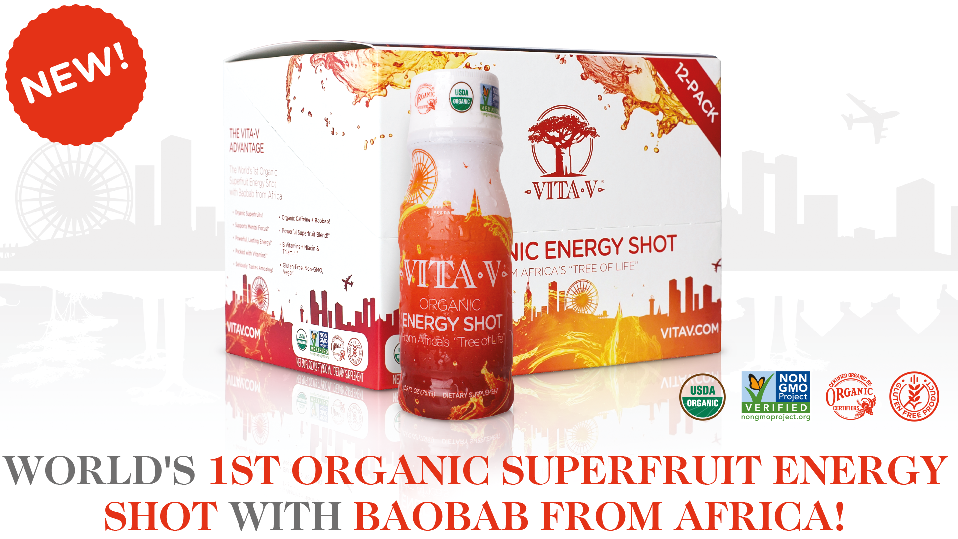 Vita-V will launch its brand and promote “Organic Energy Shot from Africa’s Tree of Life” which the privately held company defines as a way to “drink in all the goodness earth has to offer.”