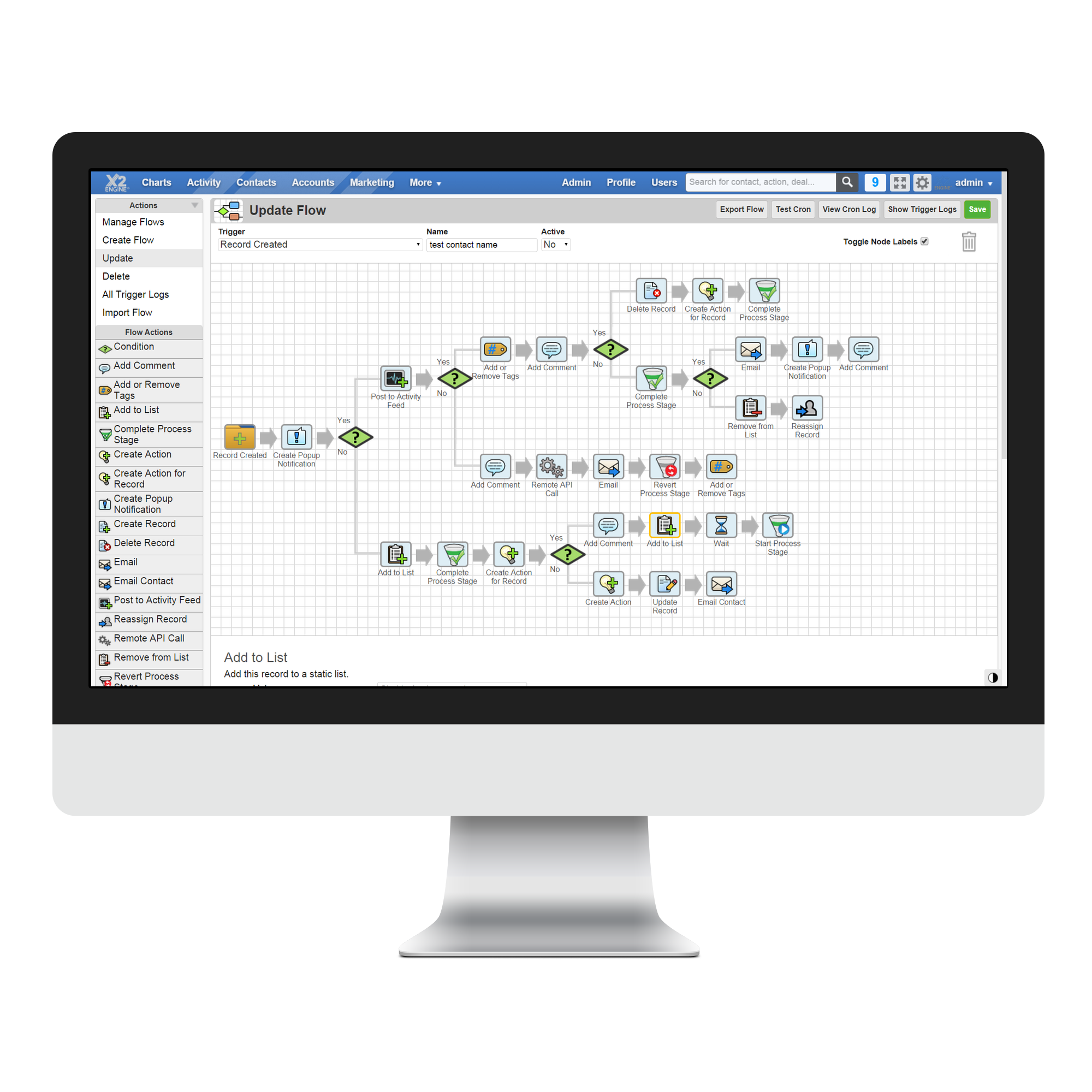 Starting with 6.0 all of X2CRM's workflow and process designers are now open source and free. X2CRM is one of the most advanced Sales, Service and Marketing automation CRM Platforms designed for small businesses.