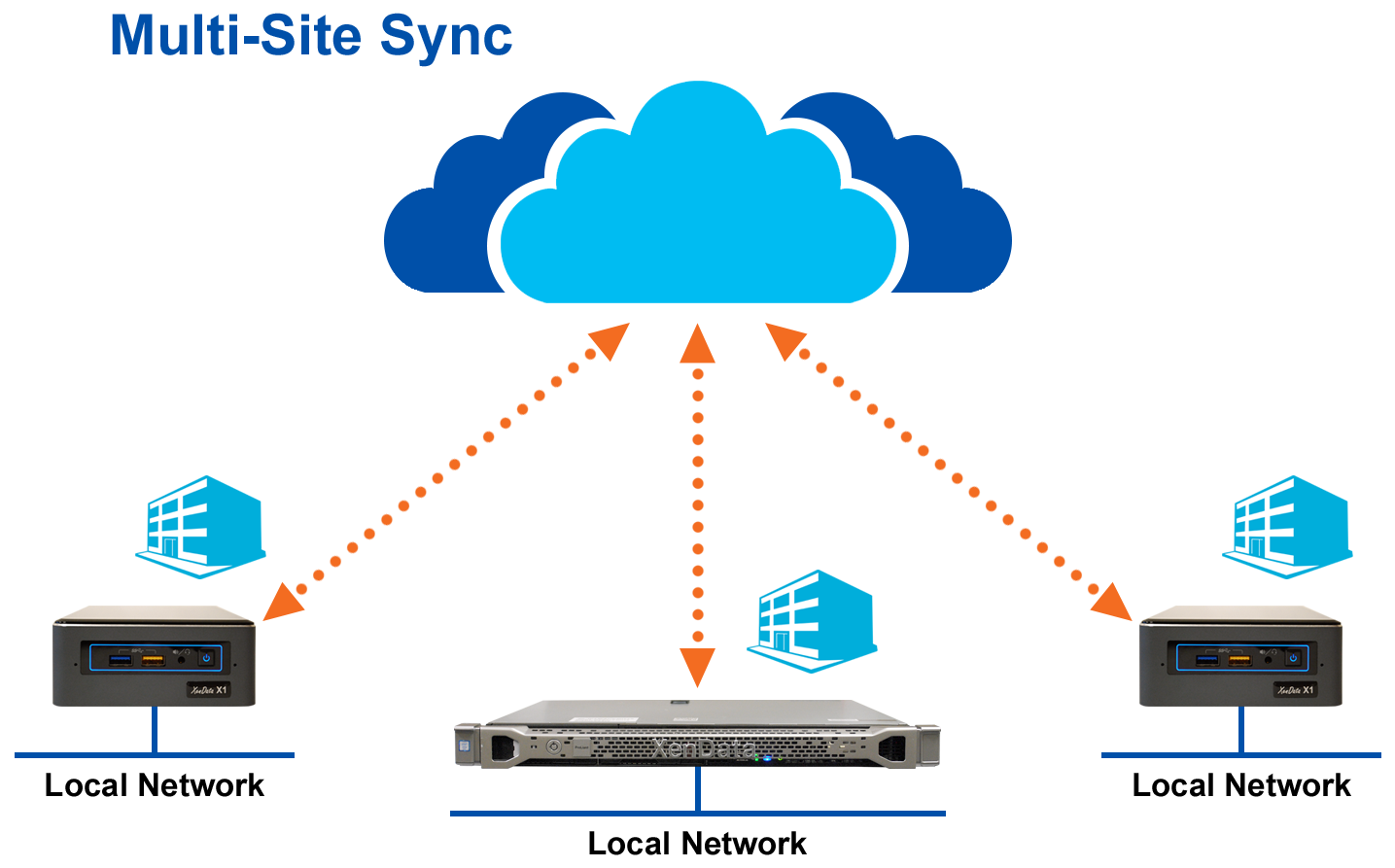 The Multi-Site Sync solution currently supports the following cloud object storage services: Amazon Web Services S3, Hot and Cool tiers of Azure Blob Storage and Wasabi S3. Furthermore, it works with multiple cloud storage accounts, allowing simultaneous use of multiple cloud storage providers within the global file system. Each gateway uses multi-part HTTPS with checksum verification for fast, reliable and secure connection to the cloud storage. The gateways adhere to the Microsoft security model based on Active Directory, allowing easy installation into existing domains. The Cloud File Gateway software can be installed on Windows Server 2016, Windows Server 2019 and Windows 10 machines. XenData also offers two optimized edge appliances that include the XenData gateway software: the CX-10, a 1 RU rack-mount appliance with a 10 TB disk cache and the X1, a compact unit that includes a 1.92 TB SSD cache.