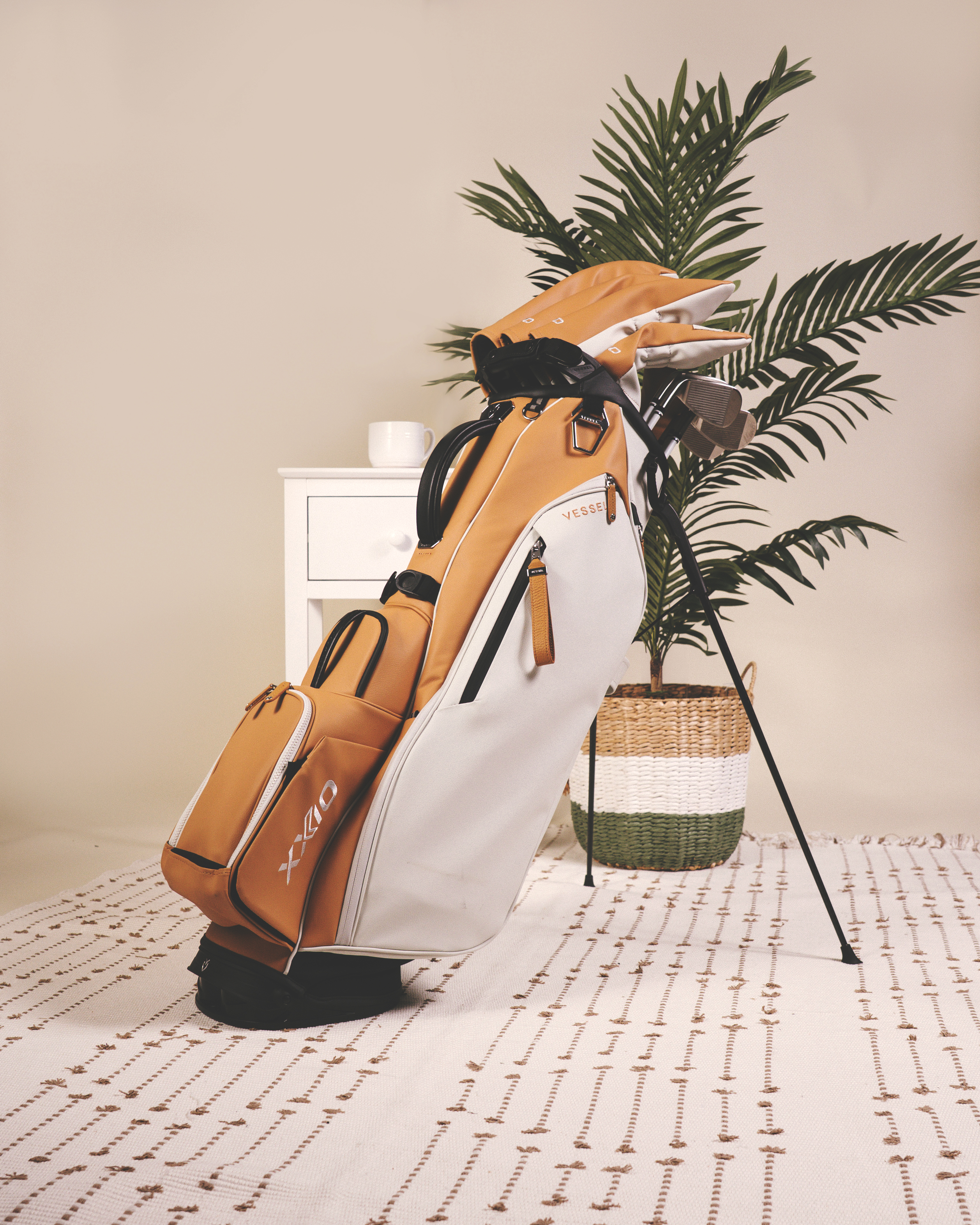 Complementing the XXIO clubs is the VESSEL Limited-Edition Player V Stand Bag, a statement piece that comes in a soft latte and white palette for a modern, elevated aesthetic. Premium leather headcovers for the Woods and Putter complete the look, reinforcing the collection's attention to detail and luxury performance. An optional matching Weekender Bag is also available for a complete lifestyle set.