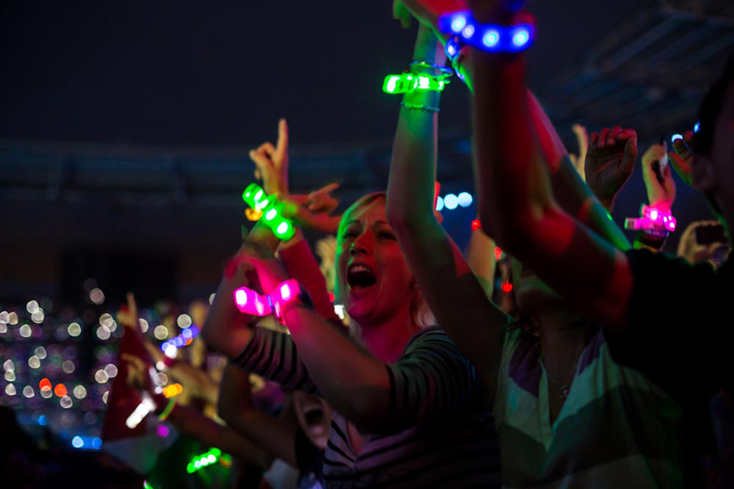 Denver Avalanche – Xylobands USA lit up the audience for an outdoor pre-game show featuring a performance by The Fray. The LED wristbands created a bright display of energized fans, along with pyrotechnics, and have become a valuable part of live entertainment.
