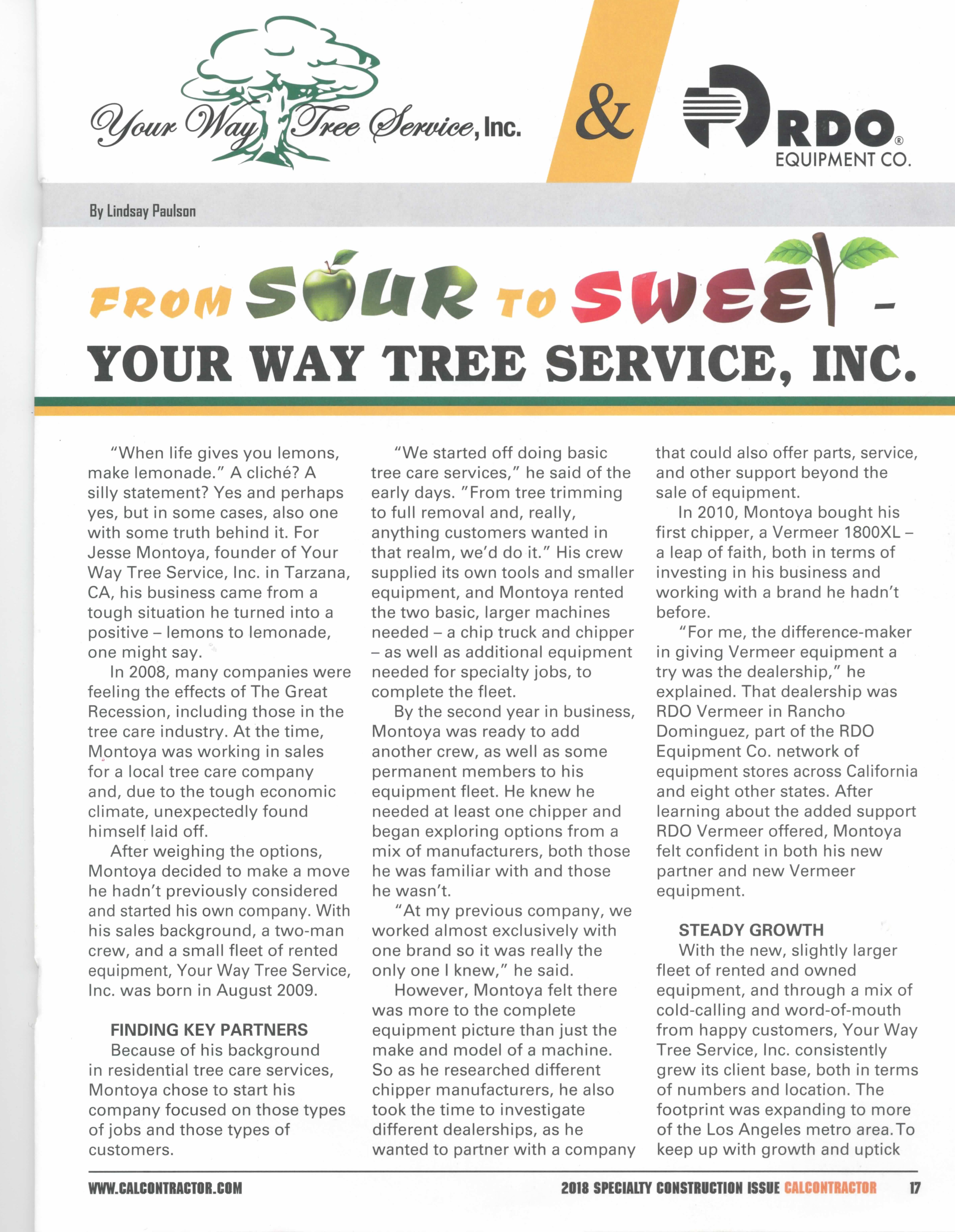 Your Way Tree Service Featured in CalContractor Magazine