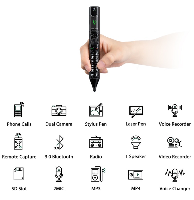 Zanco Smart Pen is the world’s thinnest smartphone with over 16 features. It includes dual front and rear cameras and because it is so compact and easy to carry, taking spontaneous photos and selfies is a snap. Photos can be stored using the onboard SD card or transferred to a smartphone. Other features include FM radio, remote capture and a unique voice-changer feature for adding a little fun to everyday calls. Designed as an everyday carry item and professional tool, the Zanco Smart Pen includes a rechargeable battery that provides six days of standby power when fully charged.