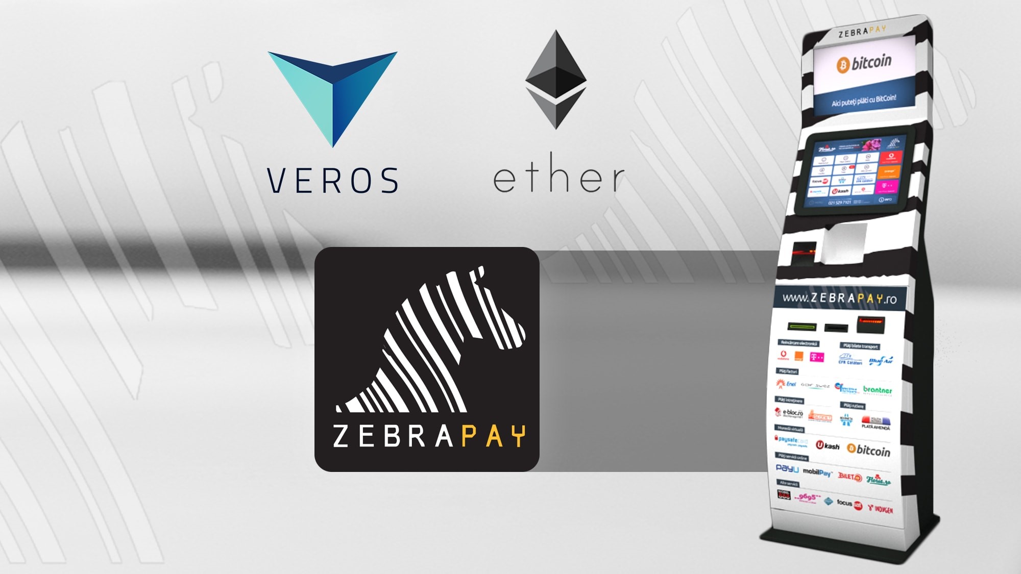 Bucharest, Romania, March 16, 2017 (Newswire.com) - The leading self-service e-payment solutions provider in Romania, ZebraPay will soon start accepting two more cryptocurrencies. The platform has announced the inclusion of Ether and VEROS (VRS) payment options in its self-service kiosks.