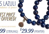 This stretch bracelet, Lapis Lazuli, is adorned with a sterling silver karma tag of your choice. This energy bracelet retails for $59.99 and is now on sale for the entire month of October for $39.99. We will also offer a Pewter Yin Yang tag option for $29.99 which normally retails for $45.99. Each month zen jewelz by: ZenJen issues a Stone of the Month which discounts one regular priced bracelet offering our clients a gorgeous stretch bracelet at a significant discount. In addition to this sale we are having free shipping for the entire month of October for all U.S. and Canadian orders.