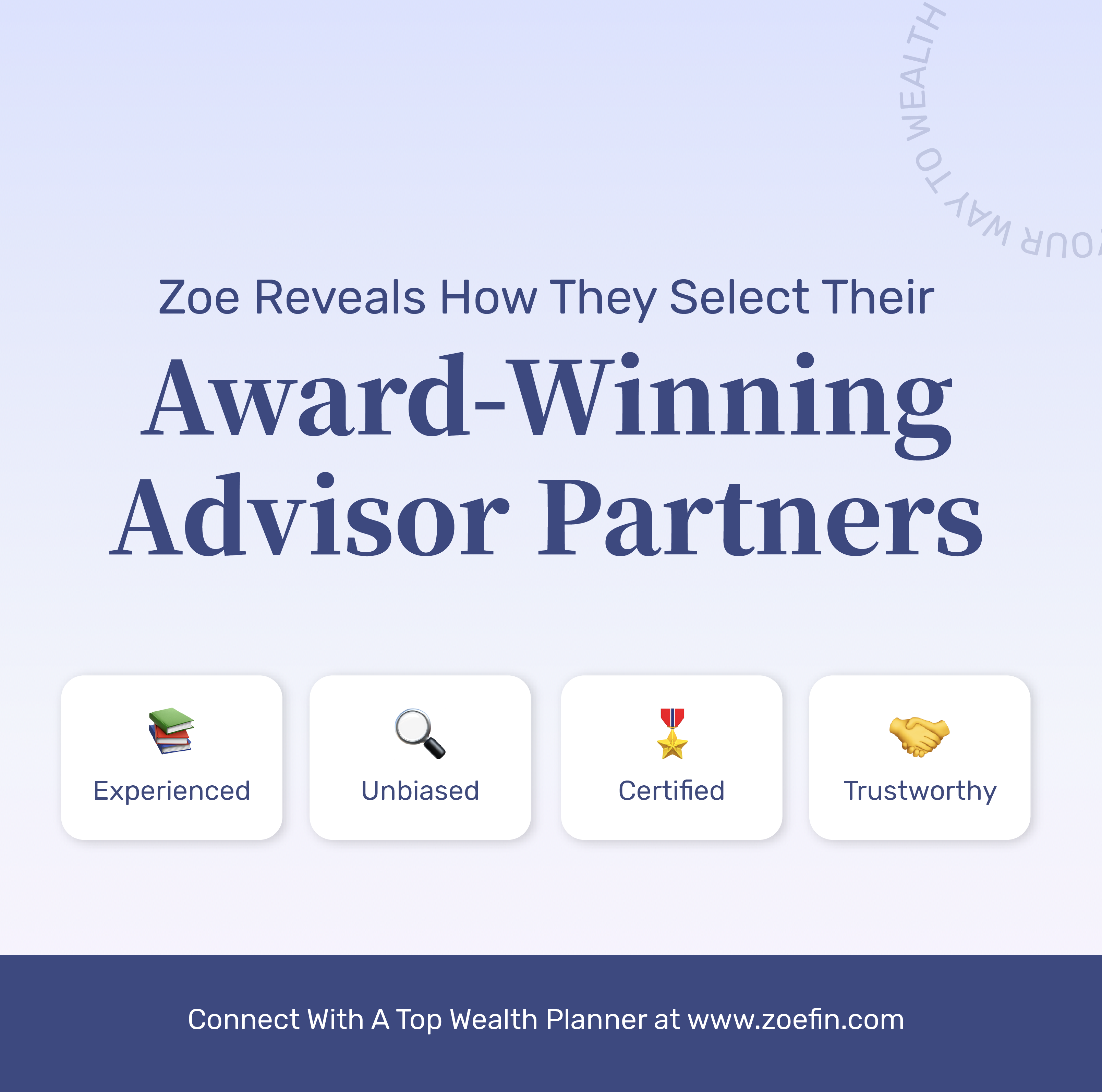 Zoe was founded with one mission: to accelerate wealth creation through exceptional client experience and innovative technology. The company's human experts, alongside powerful technology, remove the friction from the process of finding and hiring a financial advisor. Through Zoe's Platform, you will connect with Zoe-Certified Financial Advisors across the United States based on your unique financial situation and objectives. Zoe's thoughtfully curated network of interest-aligned financial advisors includes only the top 5% in the country.